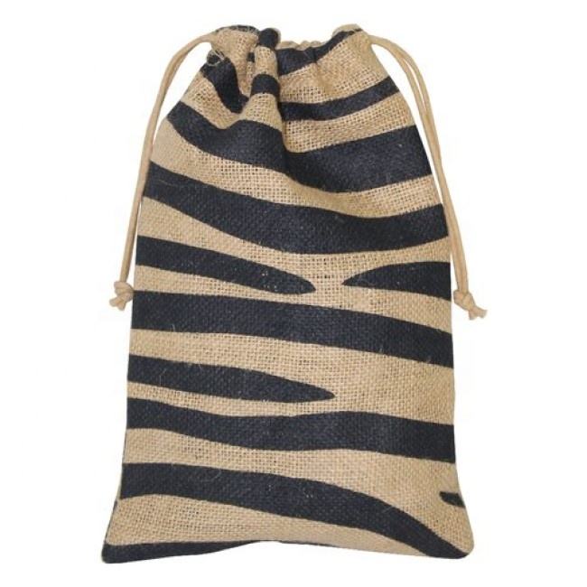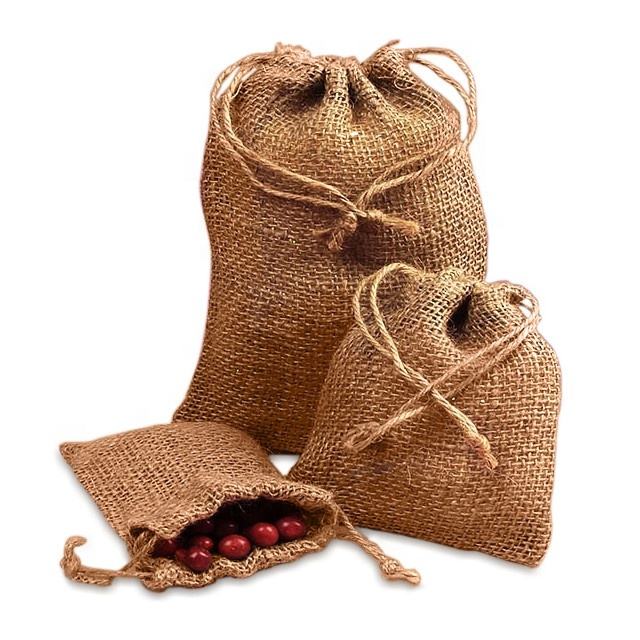 Hot Sale Eco-friendly Mini Jute Drawstring Bag with Letter Pattern for Gift Packaging