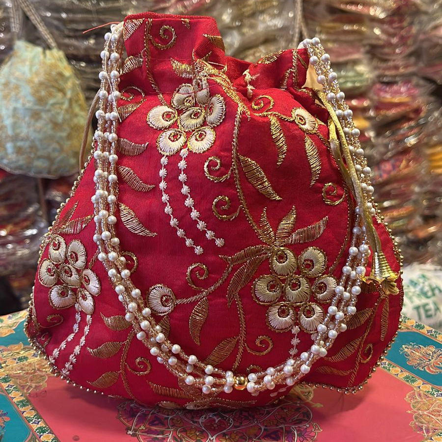 Offre Spéciale ethnique traditionnel concepteur fait à la main femmes indien mode soie Potli pochette sac poignet sac à main mariage anniversaire faveur