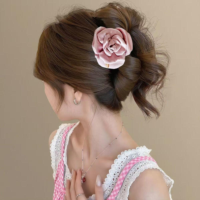 Pince à Cheveux Unisexe en Tissu Rose et Motif Floral Géométrique, Pince Requin pour Femmes et Filles, Accessoire Cheveux - Grande Vente