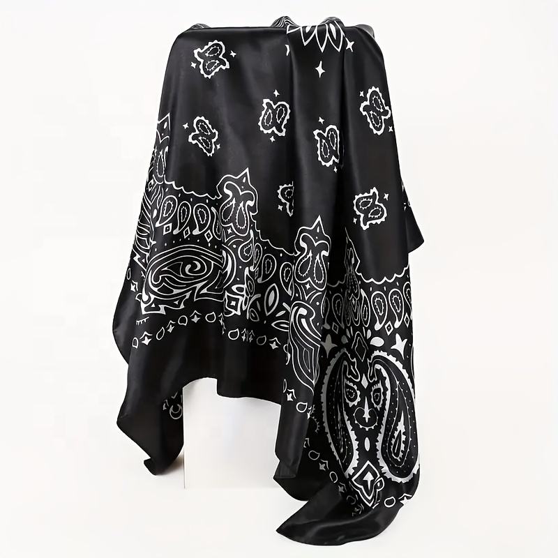 Foulard carré long imprimé personnalisé de créateur, style coréen, en soie, protection solaire, pour femme, idéal pour les fêtes – Nouvelle collection en promotion