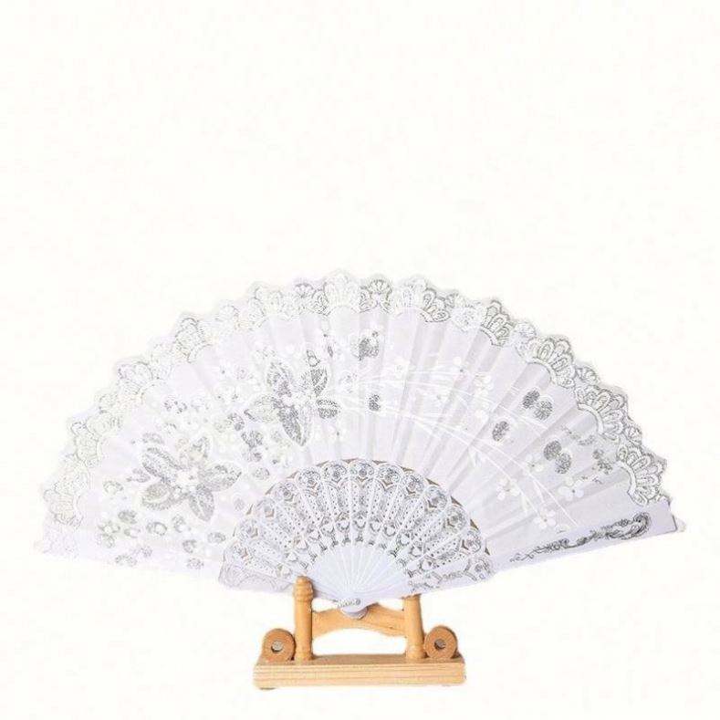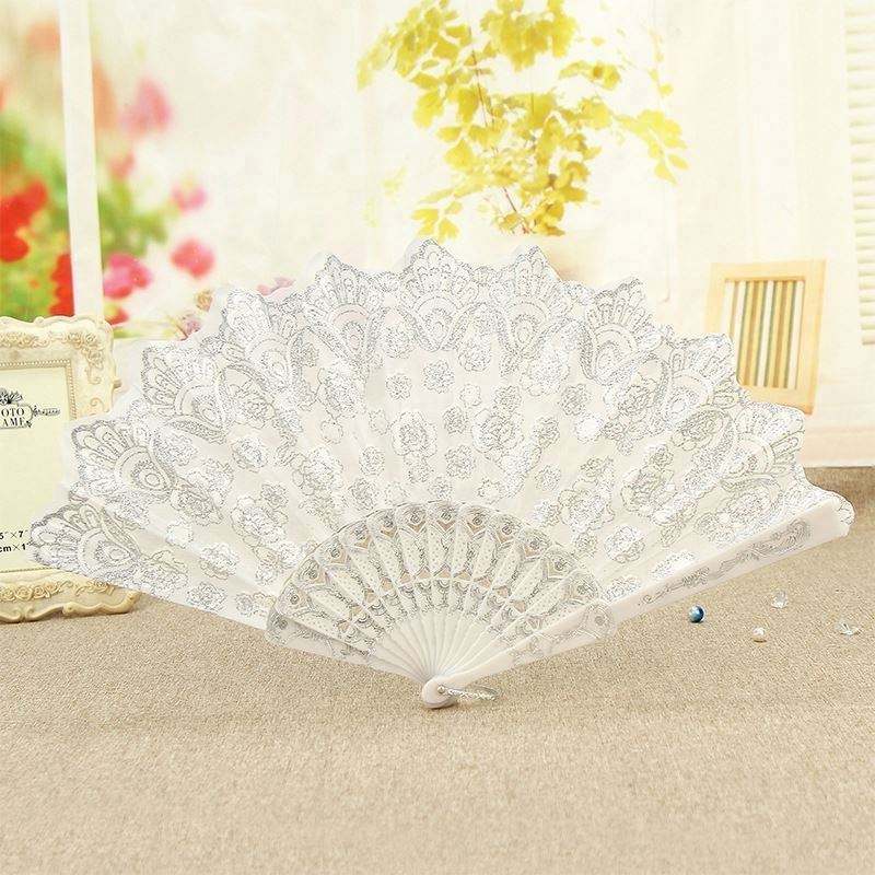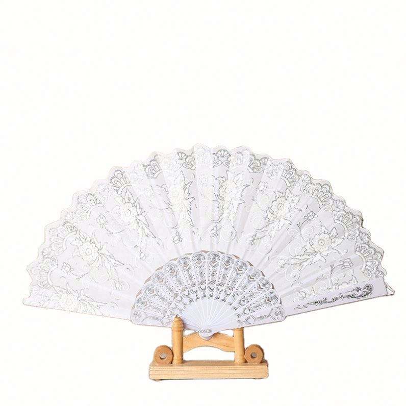 Éventail pliable en tissu tendance avec estampage à chaud PS et armature en plastique, élégant éventail en dentelle pour cadeau de mariage - Grande Vente