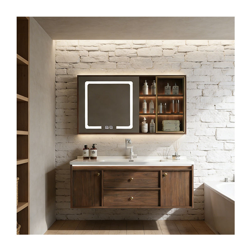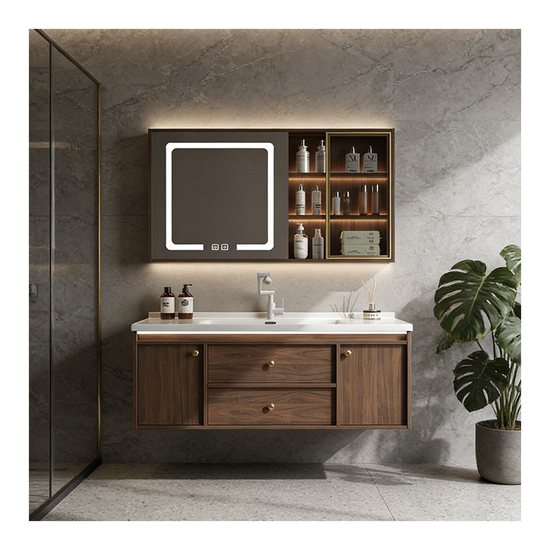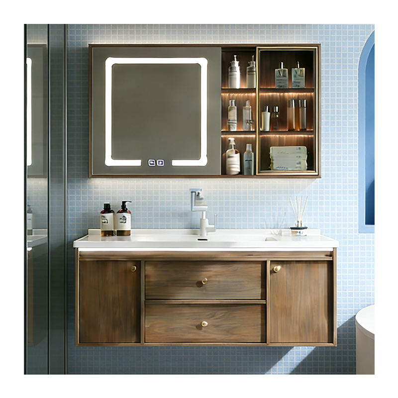 Vente Flash Évier de salle de bain en bois multi-couches flottant avec armoire, prix d'usine