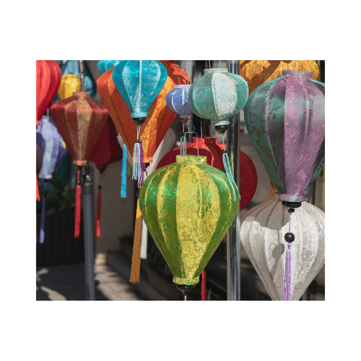 Lanterne en soie à cadre en bambou suspendue à l'extérieur pour la décoration, lanterne en soie à cadre en bambou artisanat vietnamien classique pour les décorations