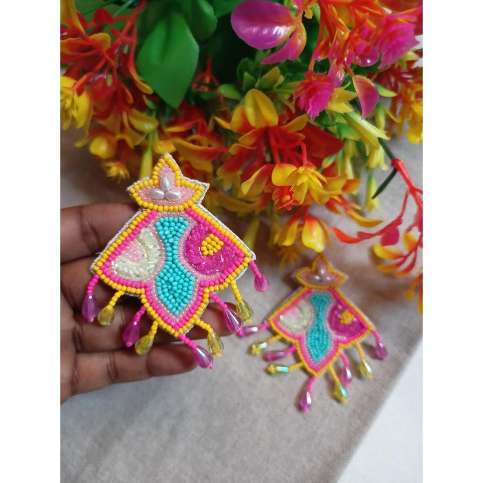Boucles d'oreilles en perles géométriques Offre Spéciale au design perlé coloré Designs artisanaux pour les femmes à la mode disponibles à la vente
