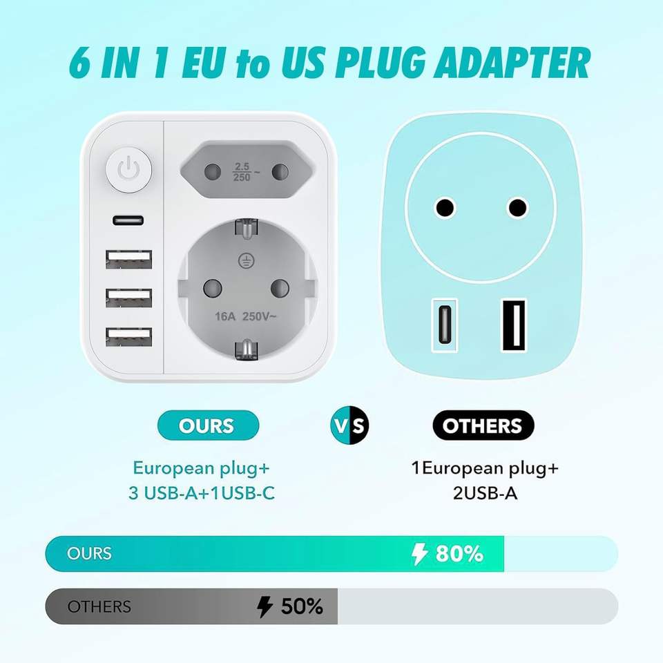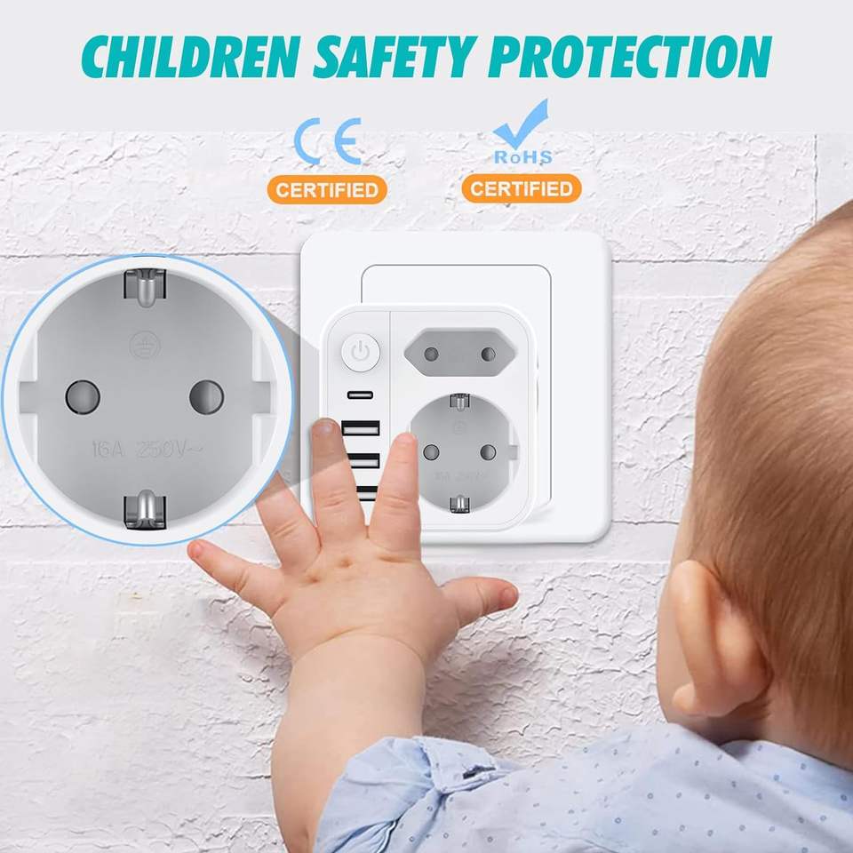 Offre Spéciale Allemagne Adaptateur de prise de voyage 3 USB 1Type C 16A Courant nominal Personnalisé Europe USA Adaptateur de prise SDK en gros