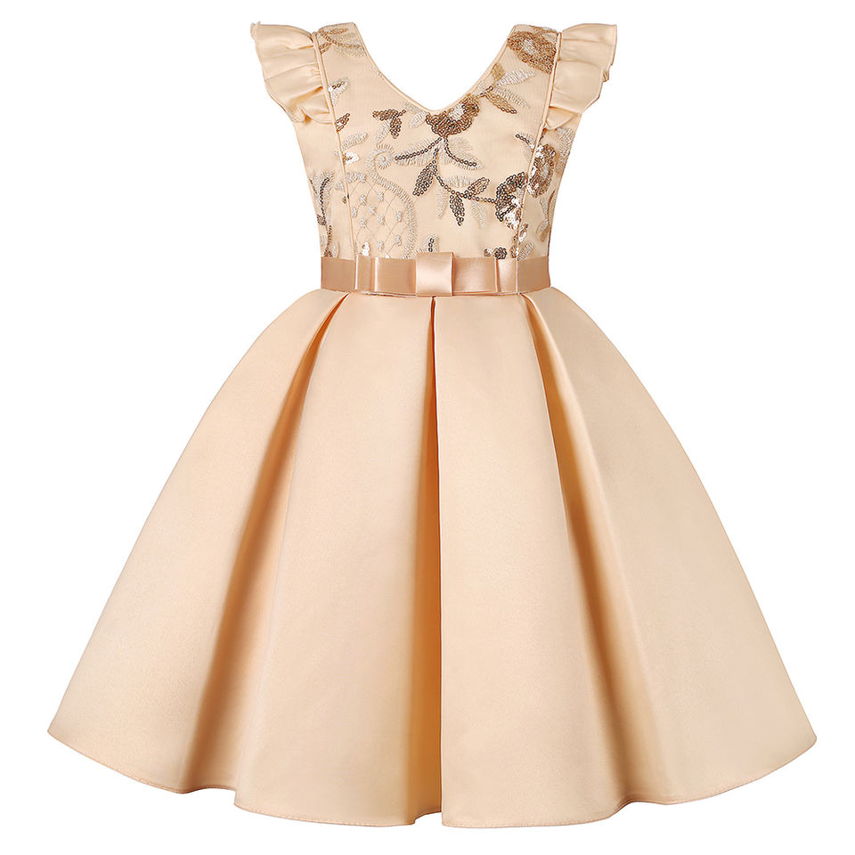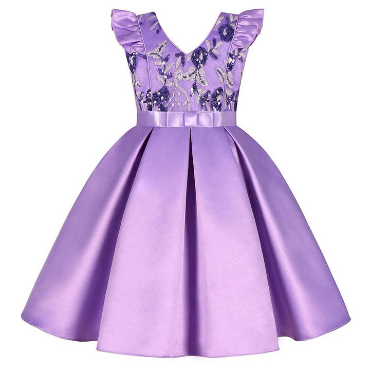 Robe de soirée pour filles à sequins et manches volantes, avec nœud, idéale pour mariage ou fête - Collection Hot Sale