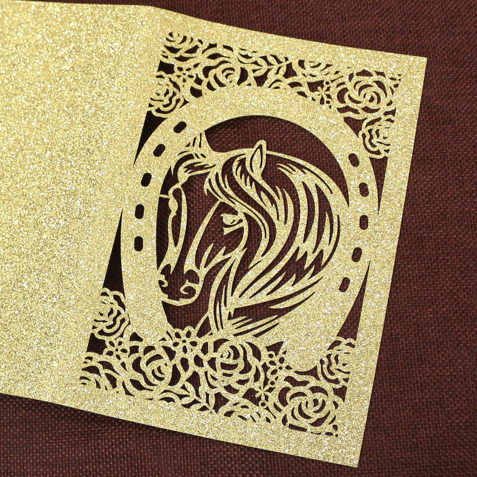 Nom du produit:Personnalisé Paillettes Cheval Conception Laser Cut Carte Pliée