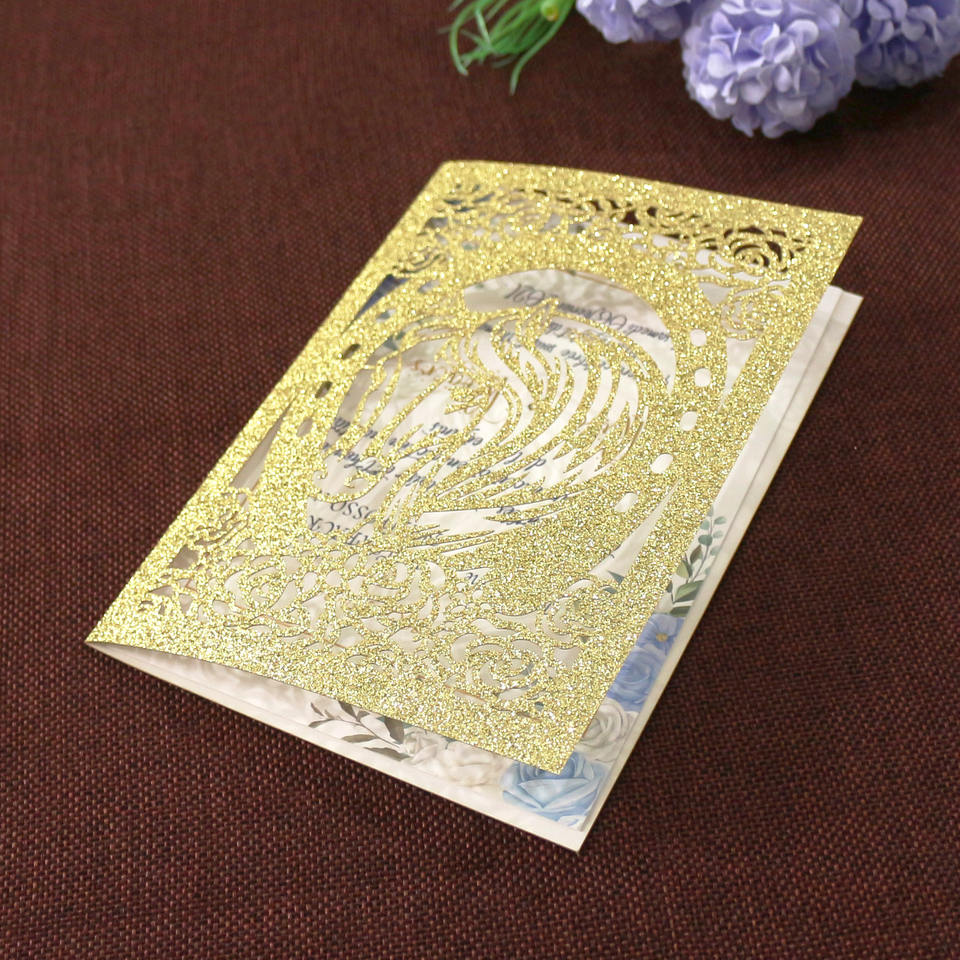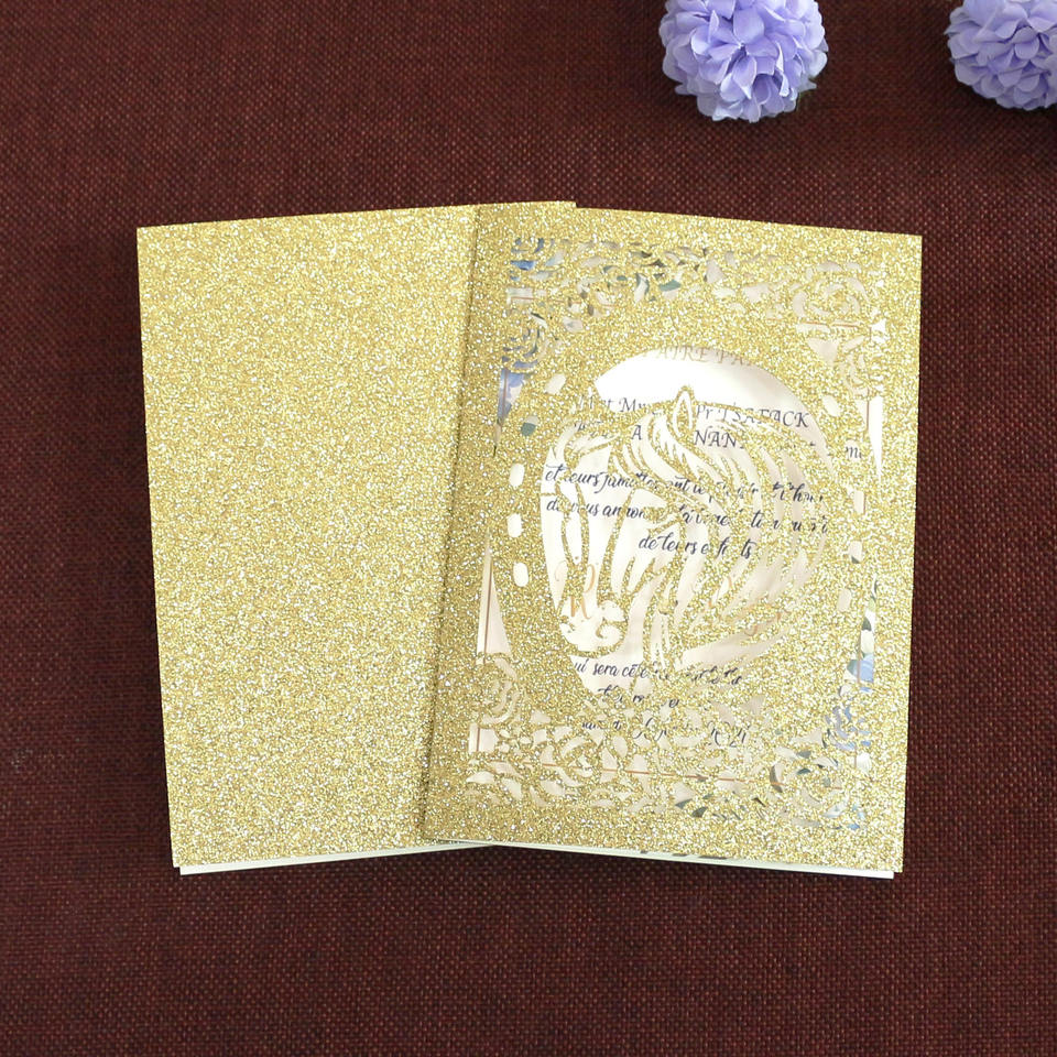 Carte pliée à paillettes Offre Spéciale motif animal cheval carte de remerciement Invitation de mariage papier doré cartes découpées au laser