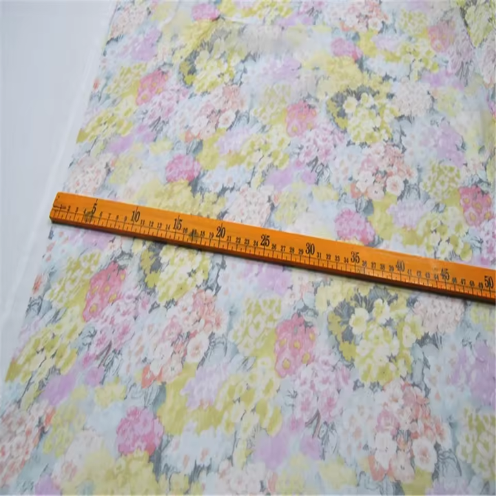 Vente chaude, tissu en crêpe de soie à fleurs brumeuses, léger, respirant, pour robe d'été, écharpe