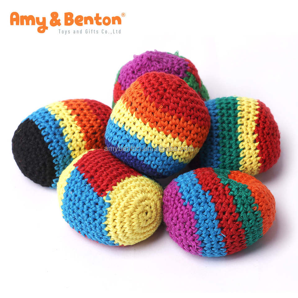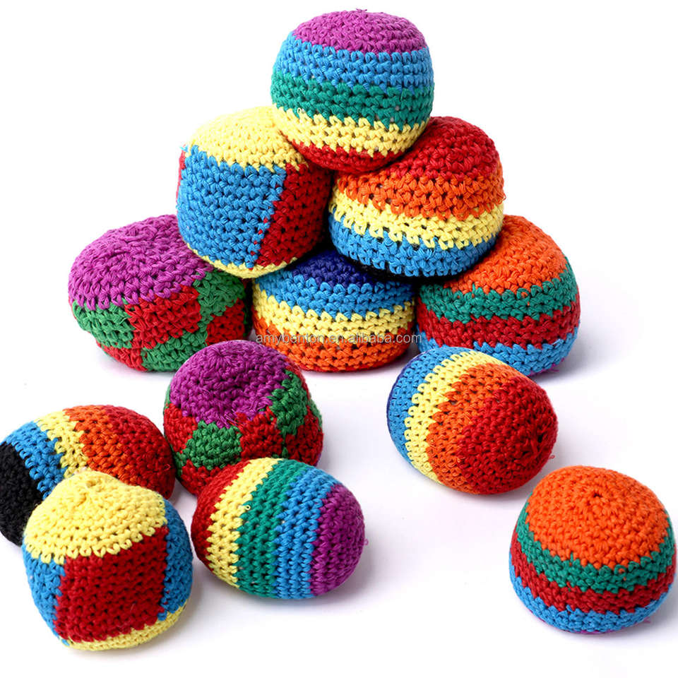 Hot Sale Hacky Ball Sacks Assoerted Colors Crochet Woven Kickball Soft Knitted Kick Balls Footbags for Kids and Adults