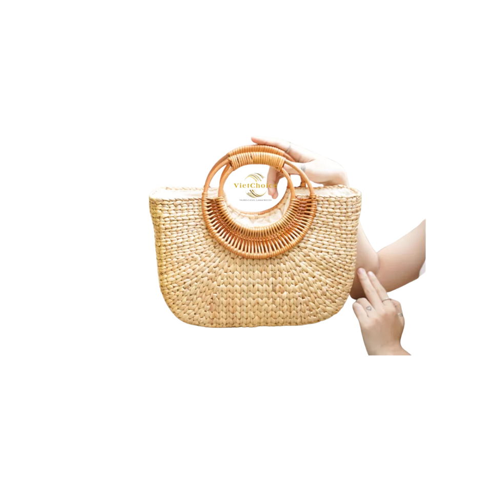Hot Sale Hand Woven Water Hyacinth Storage Bag Handmade Eco Friendly Fashion with Brass Hardware Single Tier