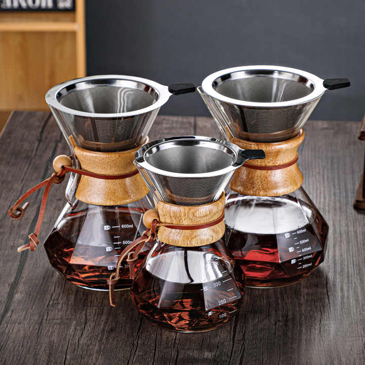 Offre Spéciale cafetières infusées à la main cafetière à brassage manuel carafe à café en verre transparent avec filtre goutte à goutte en acier inoxydable