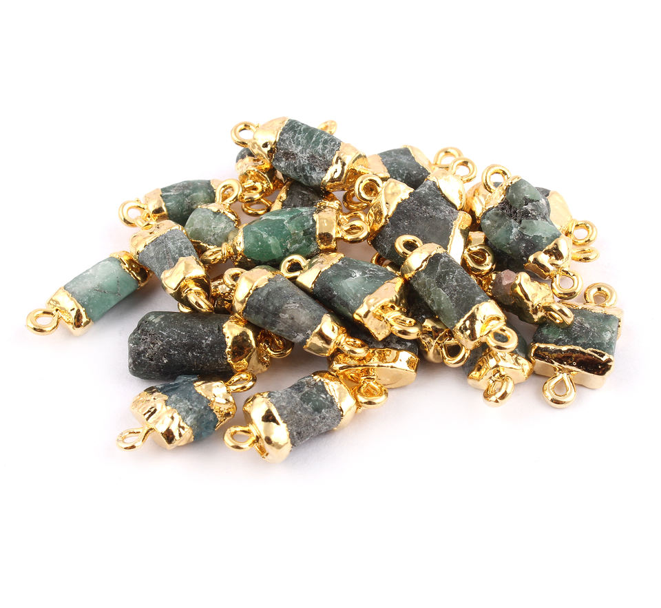 Offre Spéciale fait à la main Double Bail connecteur naturel brut émeraude pierres précieuses fantaisie forme laiton pierres précieuses connecteur or galvanoplastie