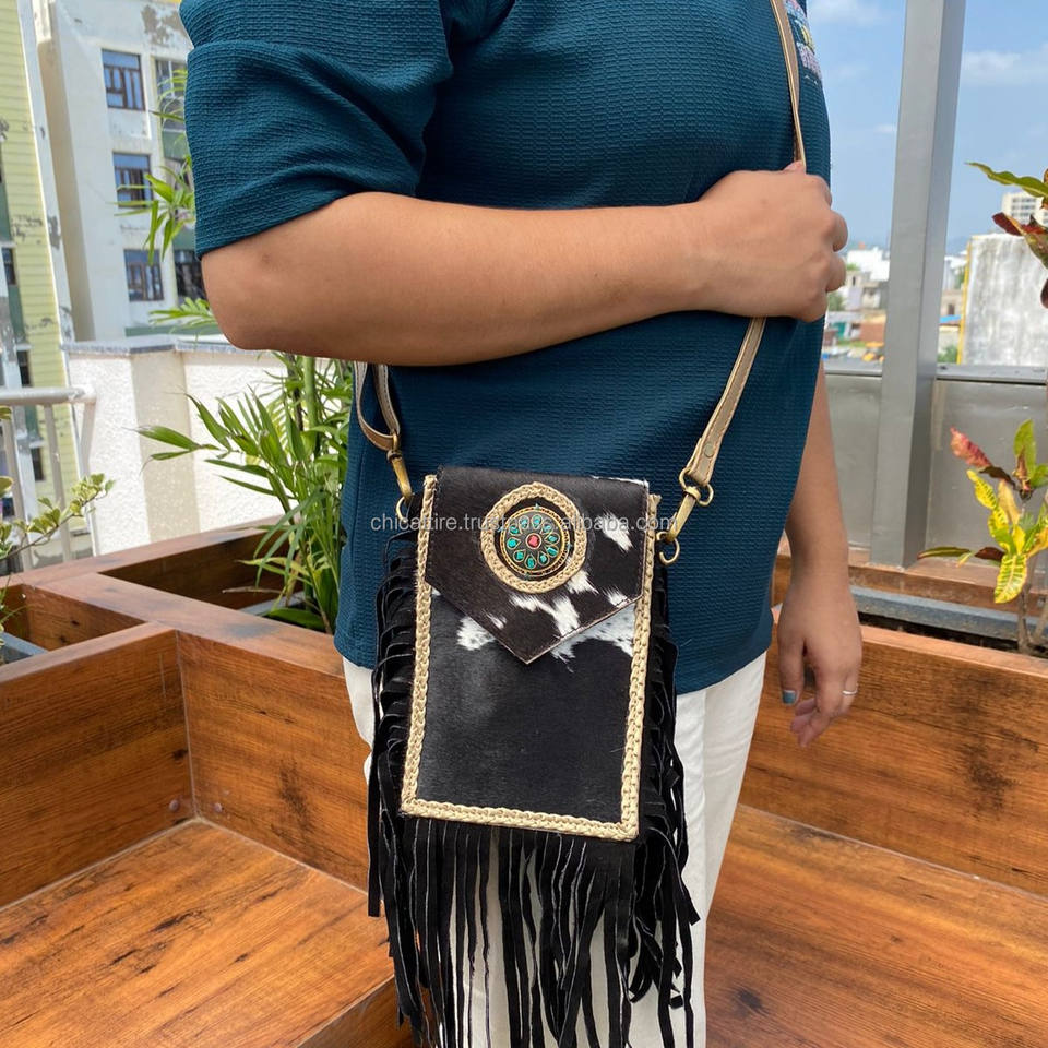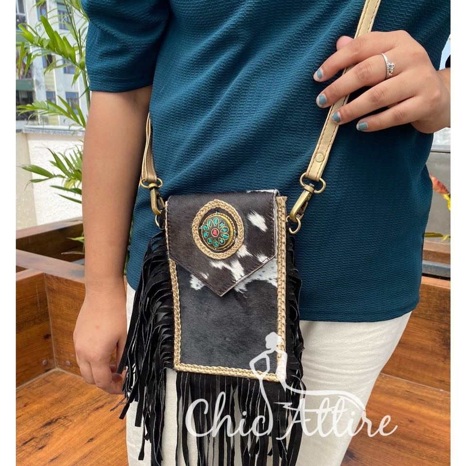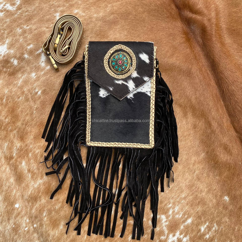 Product name:Handmade Cowhide Fringe Crossbody Mobile Bag