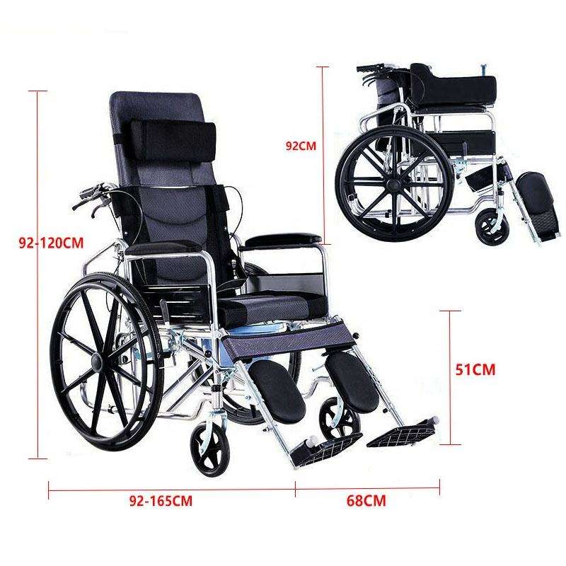 Fauteuil roulant manuel pliable à cadre en acier carbone, pneus à rayons, dossier et appui-tête amovibles, très confortable - Offre Spéciale