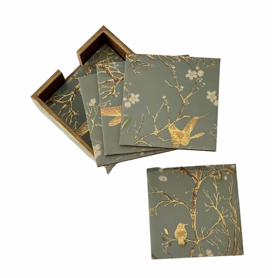 Ensemble de sous-verres en bois faits à la main de haute qualité Offre Spéciale avec support émail imprimé pas cher prix napperon/tapis de tasse