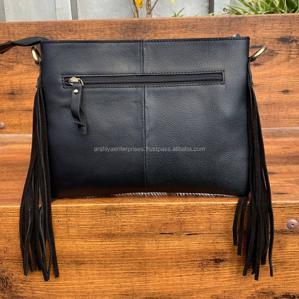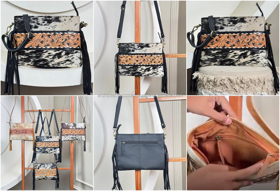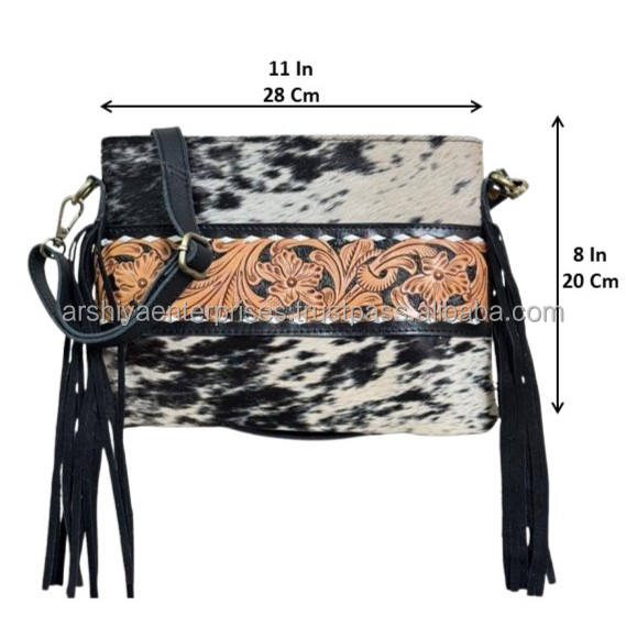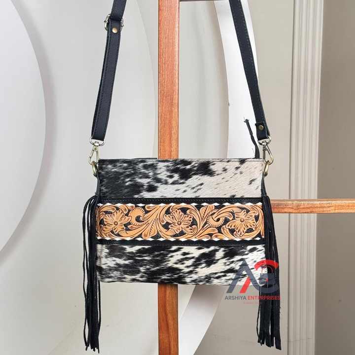 Hand Tooled Cowhide Leather Fringe Crossbody Bag