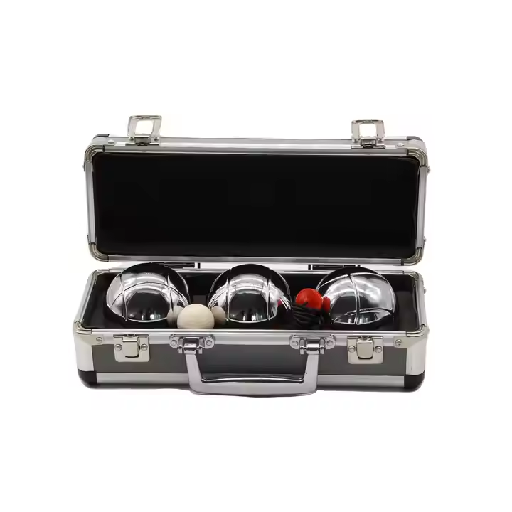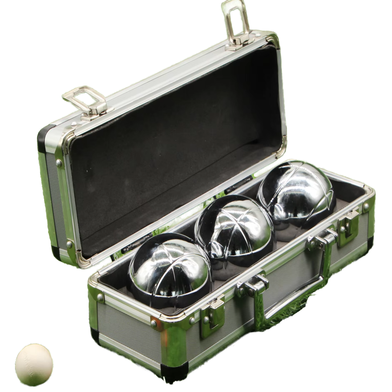 Offre Spéciale de haute qualité en acier inoxydable argent jardin jeu exercice extérieur personnaliser Logo boîte en aluminium 3 pièces 720g Boule Bocce balle