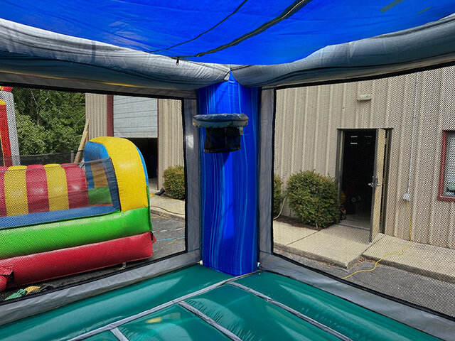 Château gonflable avec toboggan, en promotion, pour location commerciale en extérieur lors de fêtes