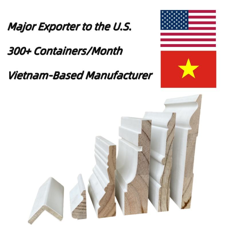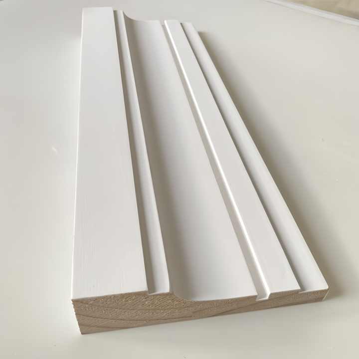 Nom:Plinthes et architraves en pin FJ à joints de doigt, apprêtées blanc