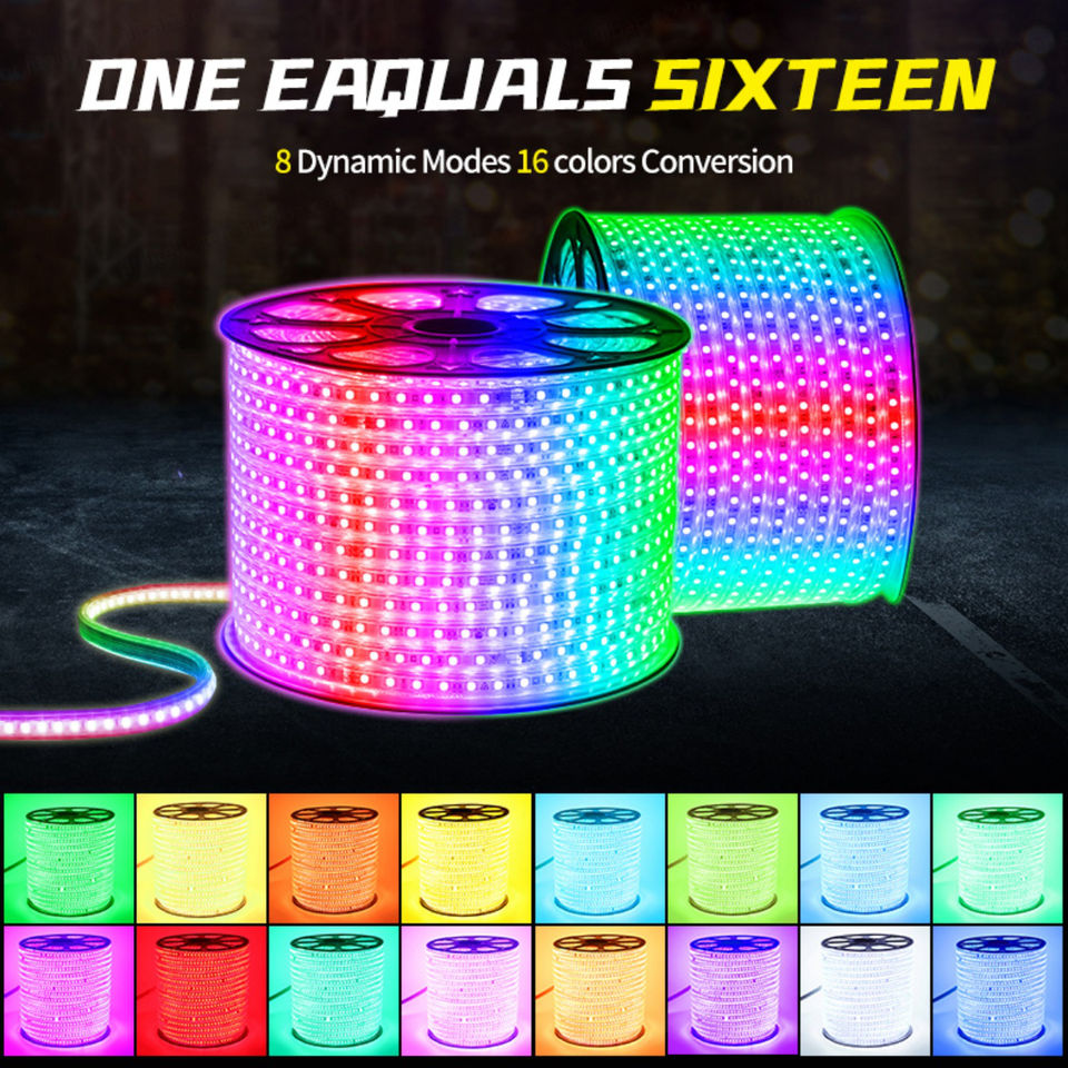 Vente flash - Bande LED RGB étanche à haute tension SMD2835 5050 avec télécommande IR App, 60 LED, 180 LED, pleine couleur