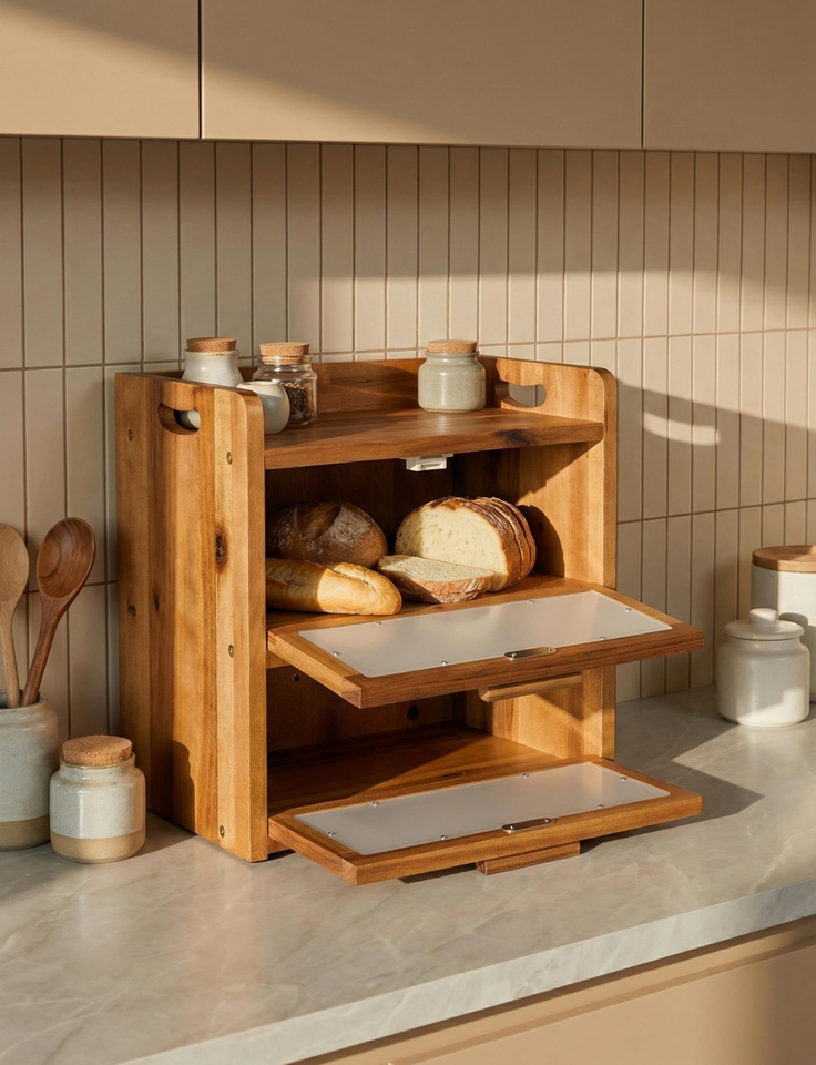Boîte de rangement pour pain en bois avec fenêtre transparente, idéale pour la cuisine et les coins de la maison - Offre spéciale