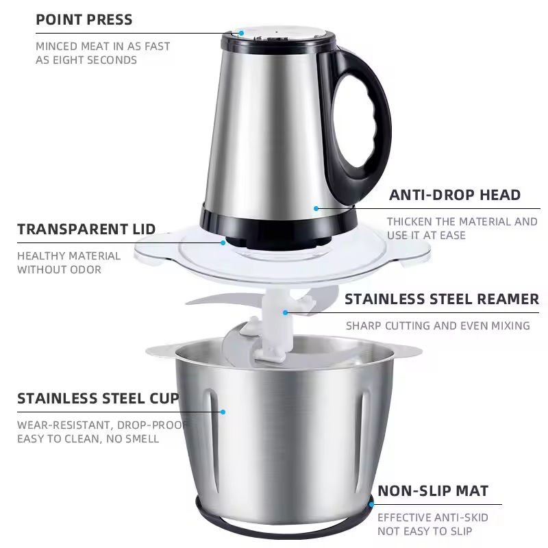 Vente flash : Hachoir à légumes et à viande pour la cuisine, robot culinaire en acier inoxydable 2l 3l 5l, hachoir à viande électrique, centrifugeuse à jus