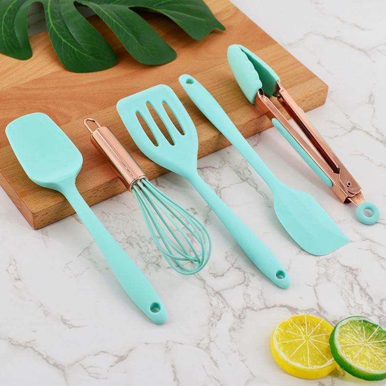Offre Spéciale de cuisine rose 5 pièces mini ustensiles de cuisine en silicone pour enfants pour la cuisson ensemble de petits ustensiles de cuisine