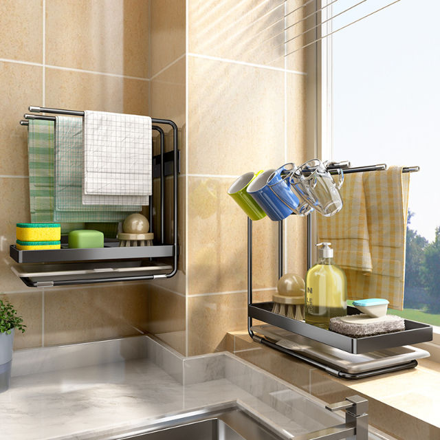 Égouttoir à torchons de cuisine en acier inoxydable avec bac de récupération, support pour liquide vaisselle et chiffon de cuisine – Offre spéciale
