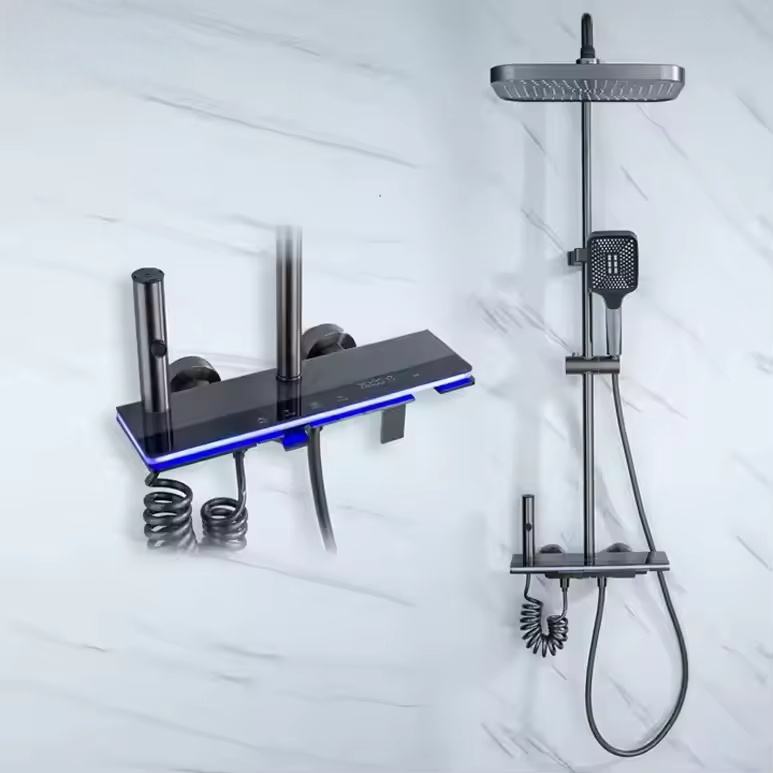 aluminum body hot cold water smart LED shower set