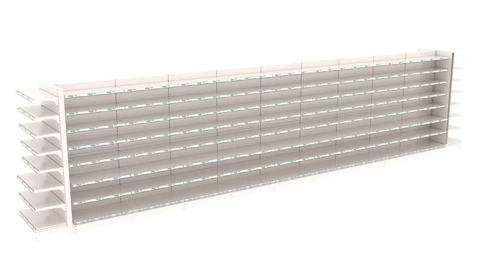 Promotion : Présentoir métallique lumineux pour étagères de supermarché, idéal pour la promotion de marques et les magasins de proximité
