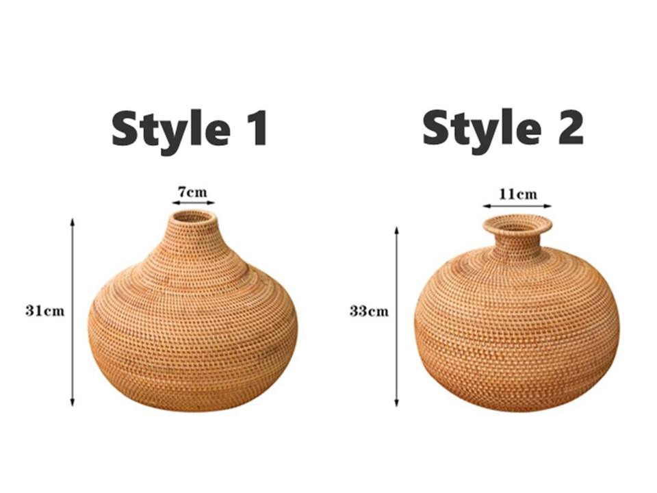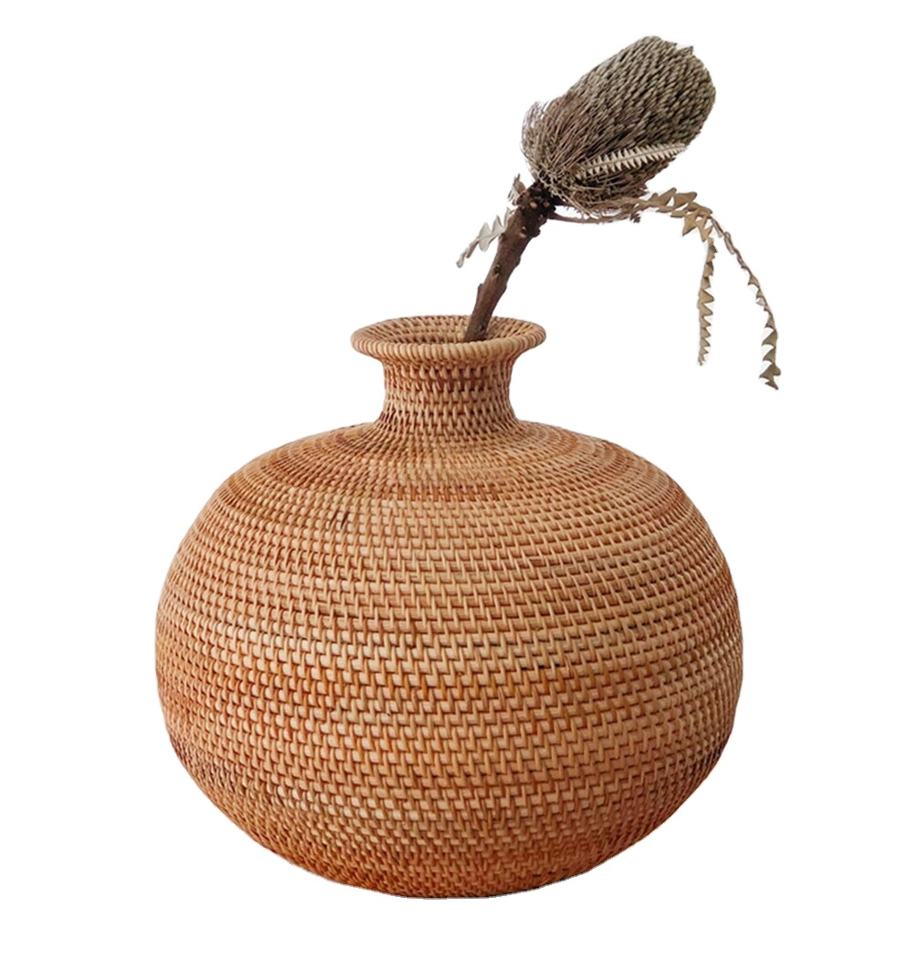 Offre Spéciale grand vase de table en rotin marron vintage élégant vase de sol à motif rond pour la décoration intérieure ou le mariage forme unique