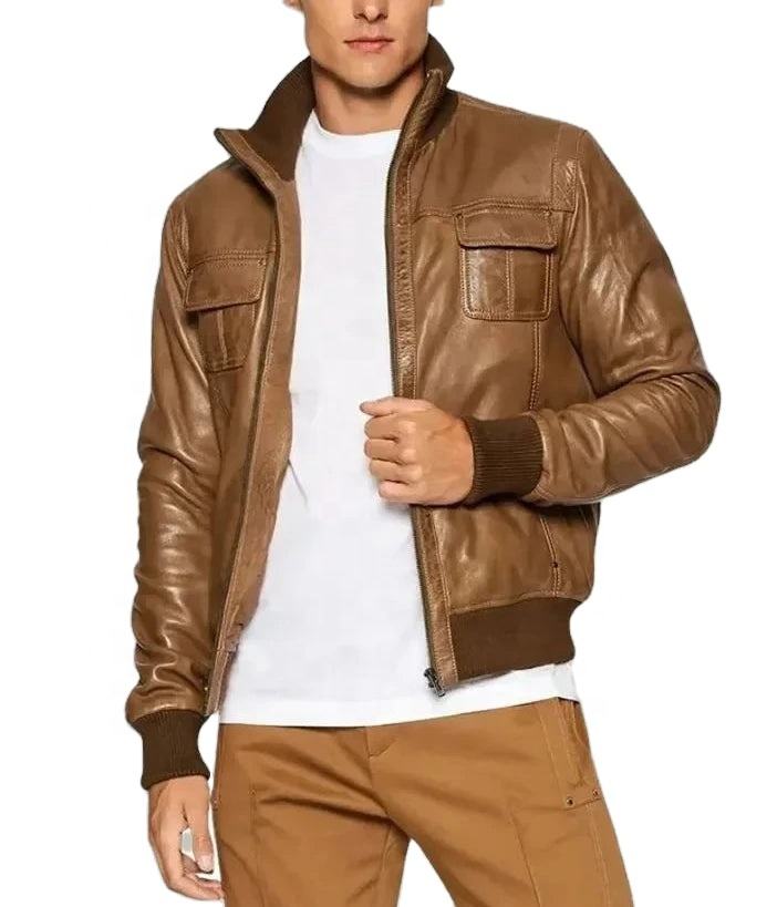 Veste en cuir à col montant et fermeture éclair intégrée, style dernière génération, prix abordable, pour l'extérieur, manches longues – Offre spéciale