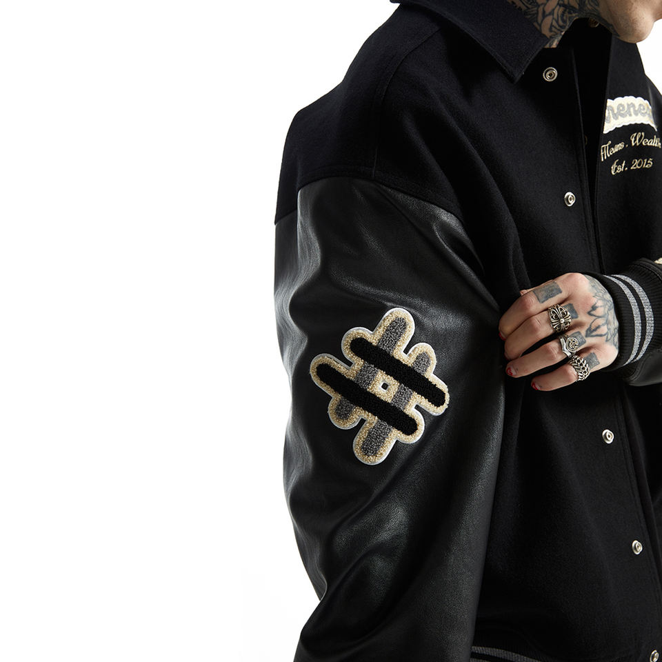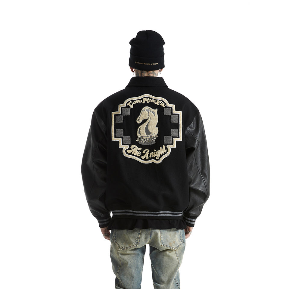 Hot Sale Leather Sleeves Chenille Embroidery Patched Wool PU Leather Sleeves Letterman Baseball College Varsities Jacket Custom