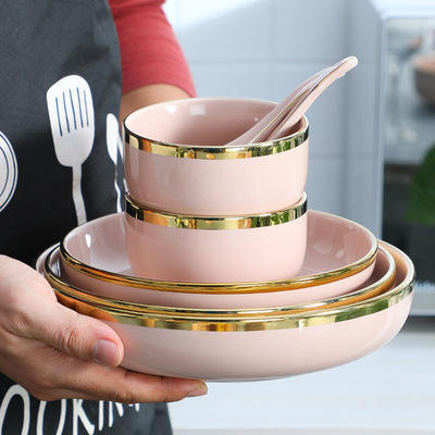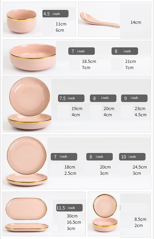 Offre Spéciale – Vaisselle de Luxe Écologique en Porcelaine Rose et Céramique Dorée – Assiettes Minimalistes Personnalisables pour la Maison, Sûres pour les Aliments – Vente en Gros