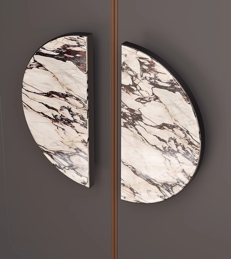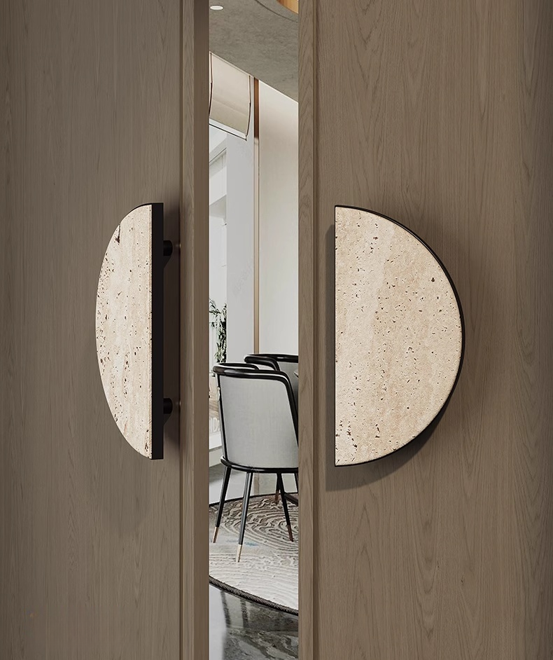 Poignée de porte en marbre naturel demi-lune de style semi-luxe Offre Spéciale pour portes en bois et verre