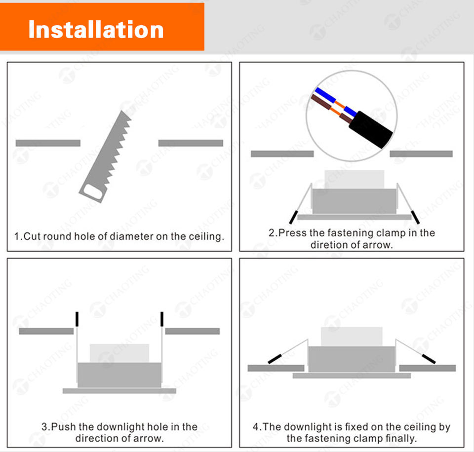 Méthode d'installation:Clip jusqu'au module MR16/GU10/