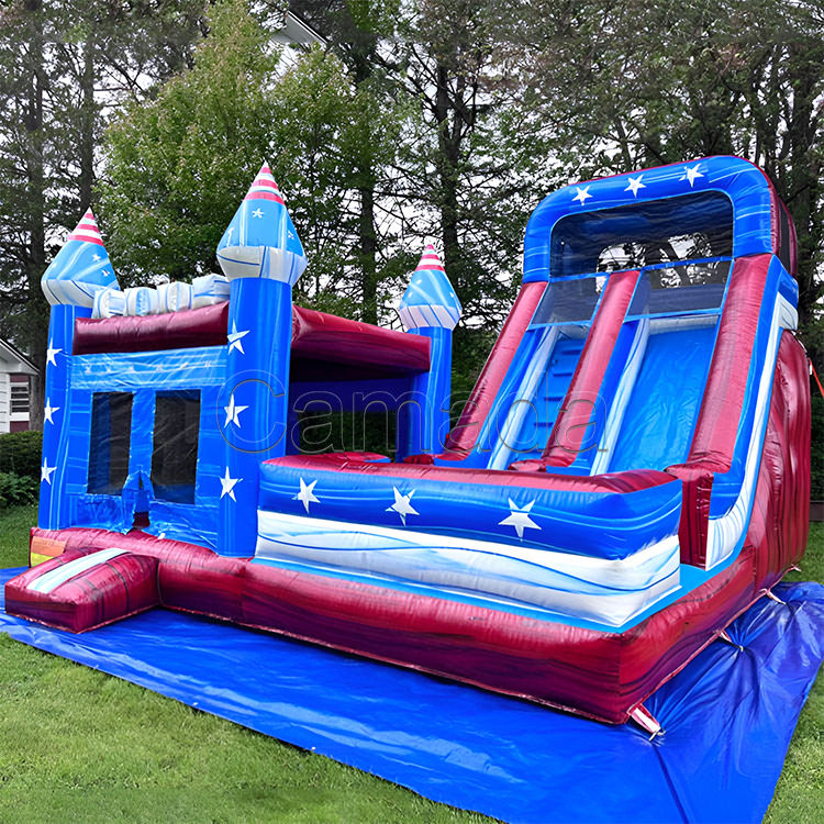 Vente flash Château gonflable combiné avec toboggan en marbre rouge et bleu étoile