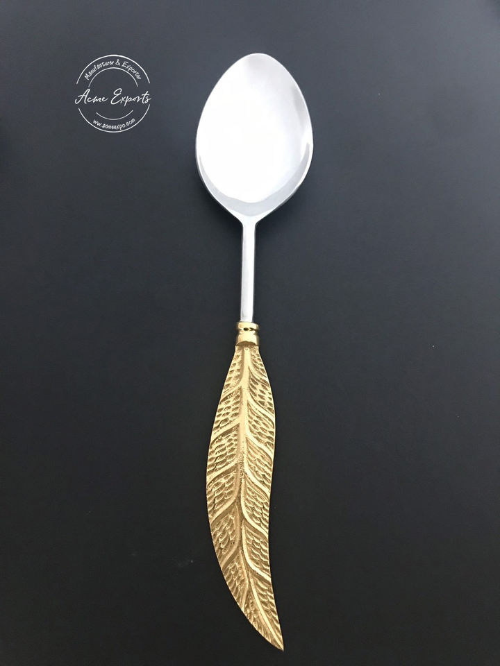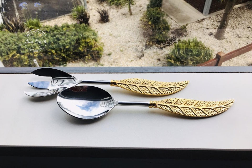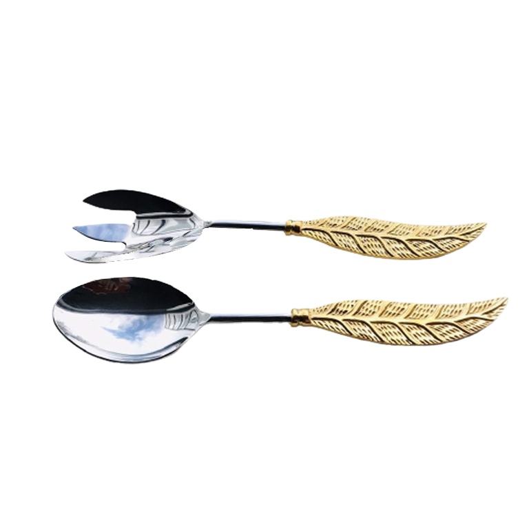Ensemble de cuillères à salade en acier inoxydable écologique de designer, avec poignée en forme de feuille, finition dorée, passe au lave-vaisselle, pour la salle à manger, les cadeaux, la cuisine, la table