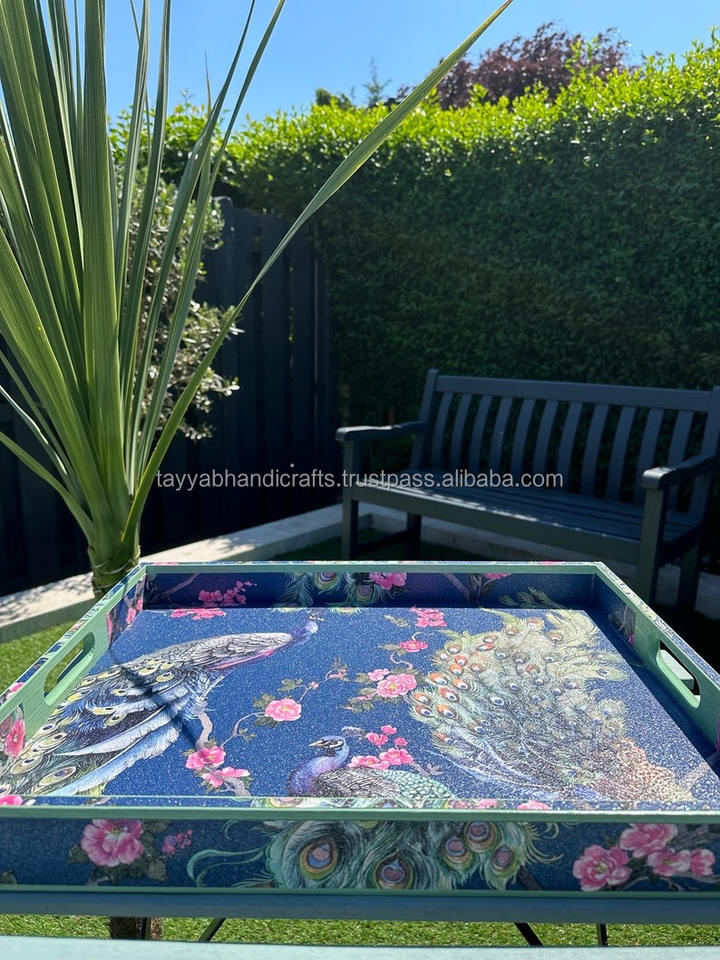 Vente flash : Ensemble de plateaux Meena, très bonne qualité, plateaux de service en bois, plateau en MDF d'Inde