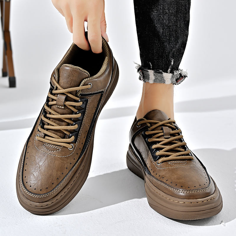 Hot Sale Men's Casual Sneakers Retro Sporty High Top Leather Shoes Luxury Mesh Lining Fashionable Breathable Walking Sneakers