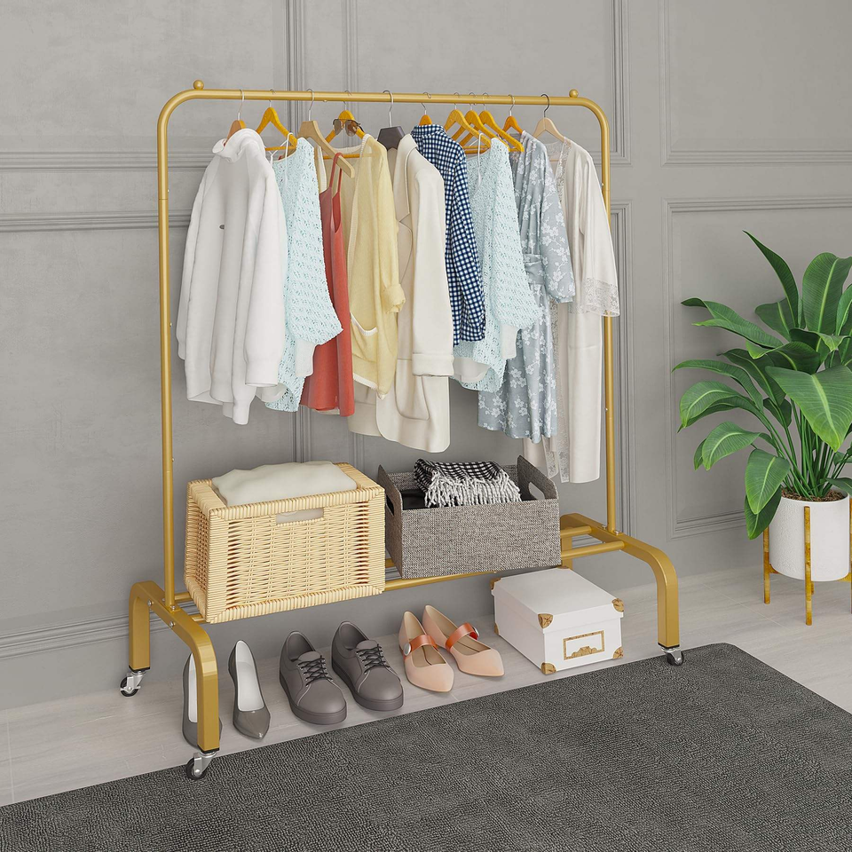 Porte-vêtements en métal modèle Offre Spéciale Double tige vêtements roulants supports d'affichage suspendus
