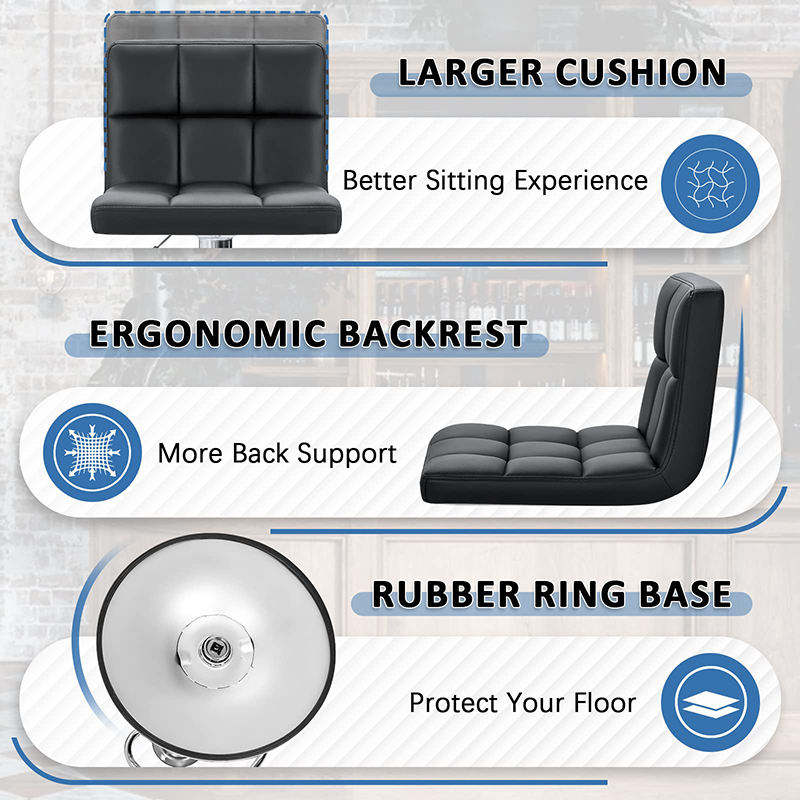Best-seller Tabouret de bar moderne Pivotant réglable en cuir Pu Île carrée Tabourets de bar noirs pour la cuisine