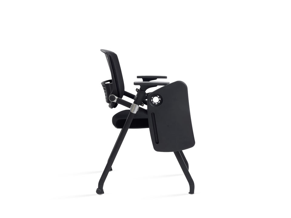Chaise pliable empilable en maille noire moderne à prix réduit avec tableau d'écriture pour hôtel, école, usage commercial