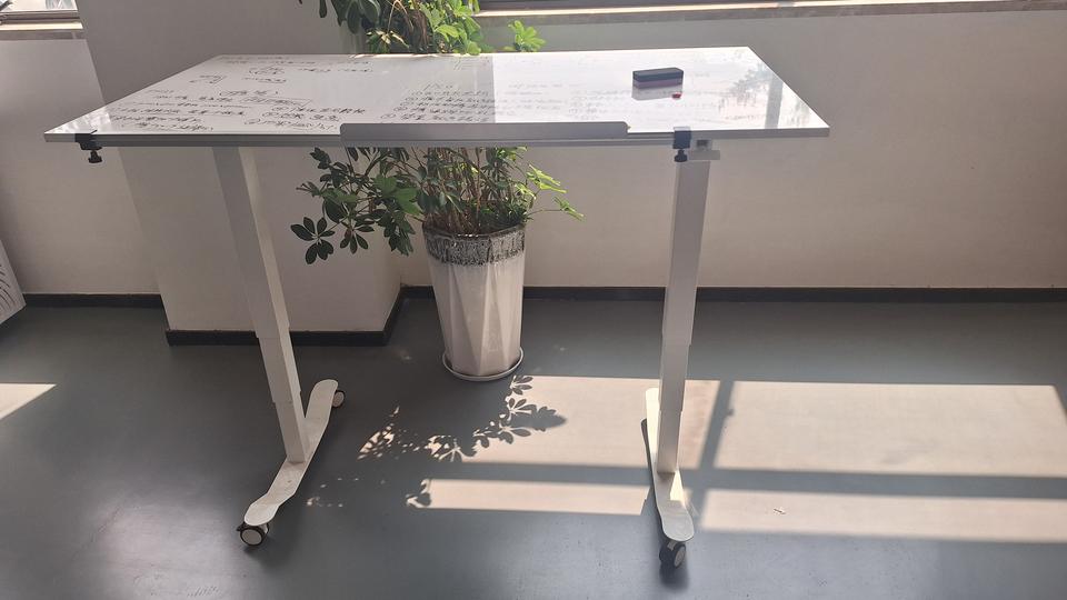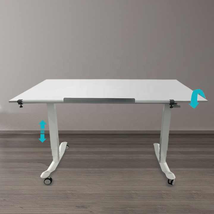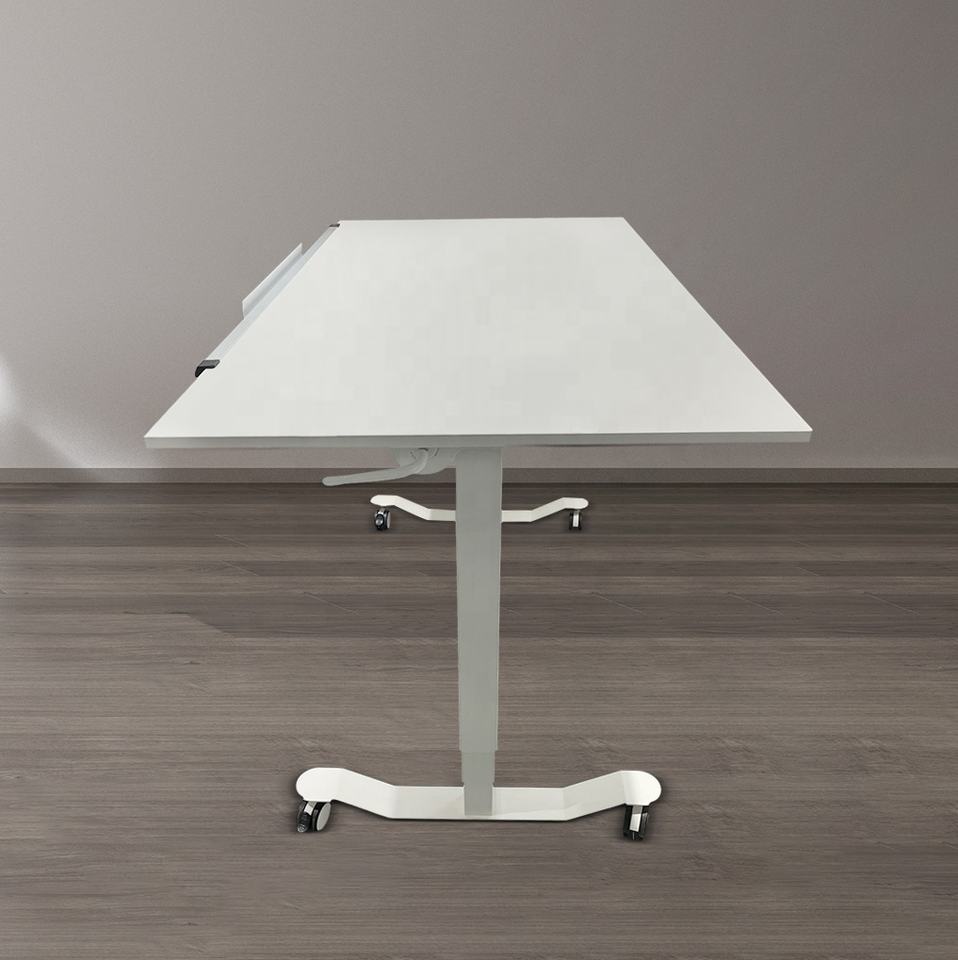 Table de bureau pliante ergonomique à deux pieds, design moderne, cadre en fer pneumatique, hauteur réglable 72-113 cm – Offre Spéciale