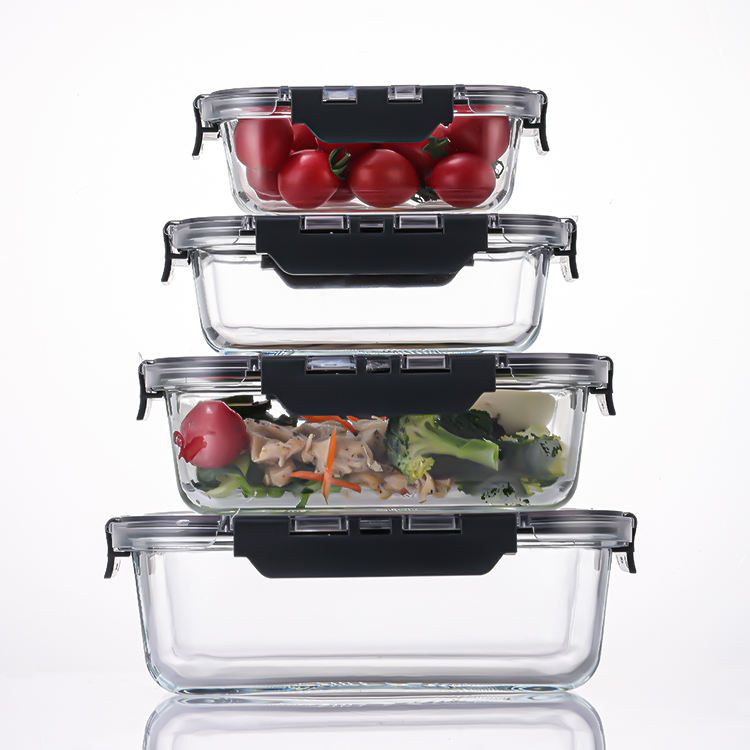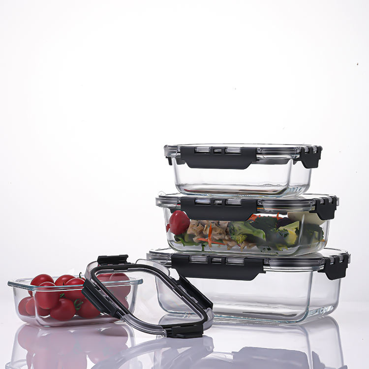 Offre Spéciale Design moderne Récipient de préparation de repas en verre Couvercles Récipients de stockage de garde-manger de cuisine pour le déjeuner Salade de fruits Légumes Plus