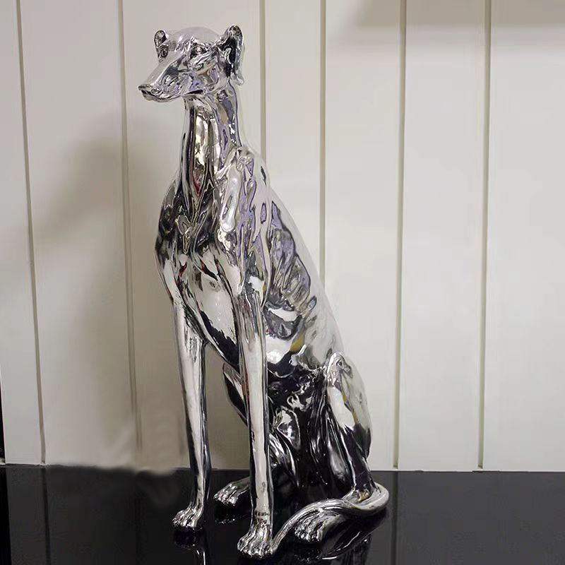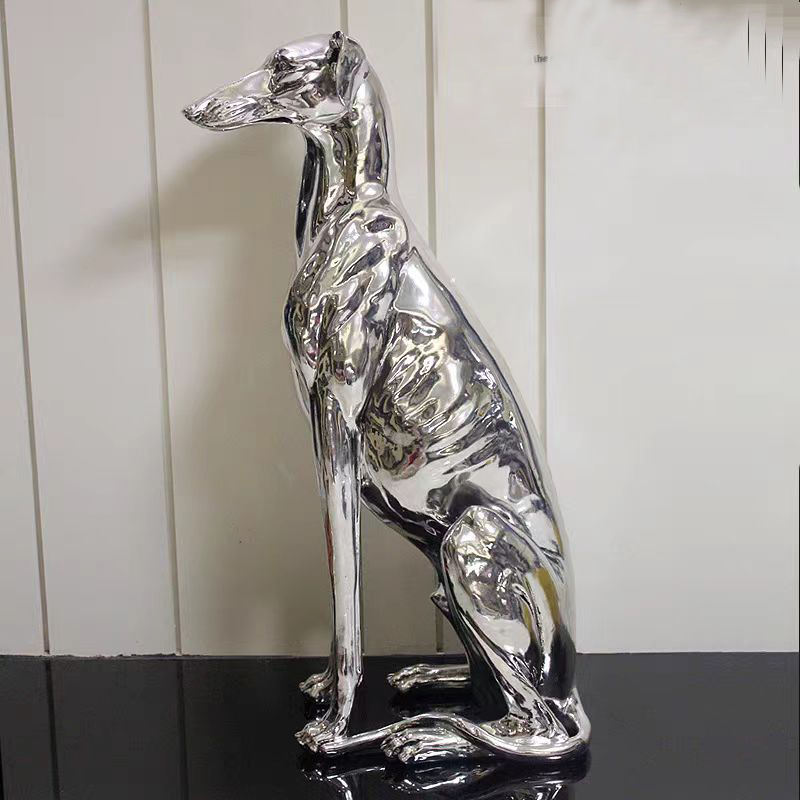 Offre Spéciale Figurines d'animaux en fibre de verre en résine grandeur nature moderne Statue de chien lévrier géant chromé peint à la main artistique