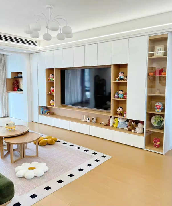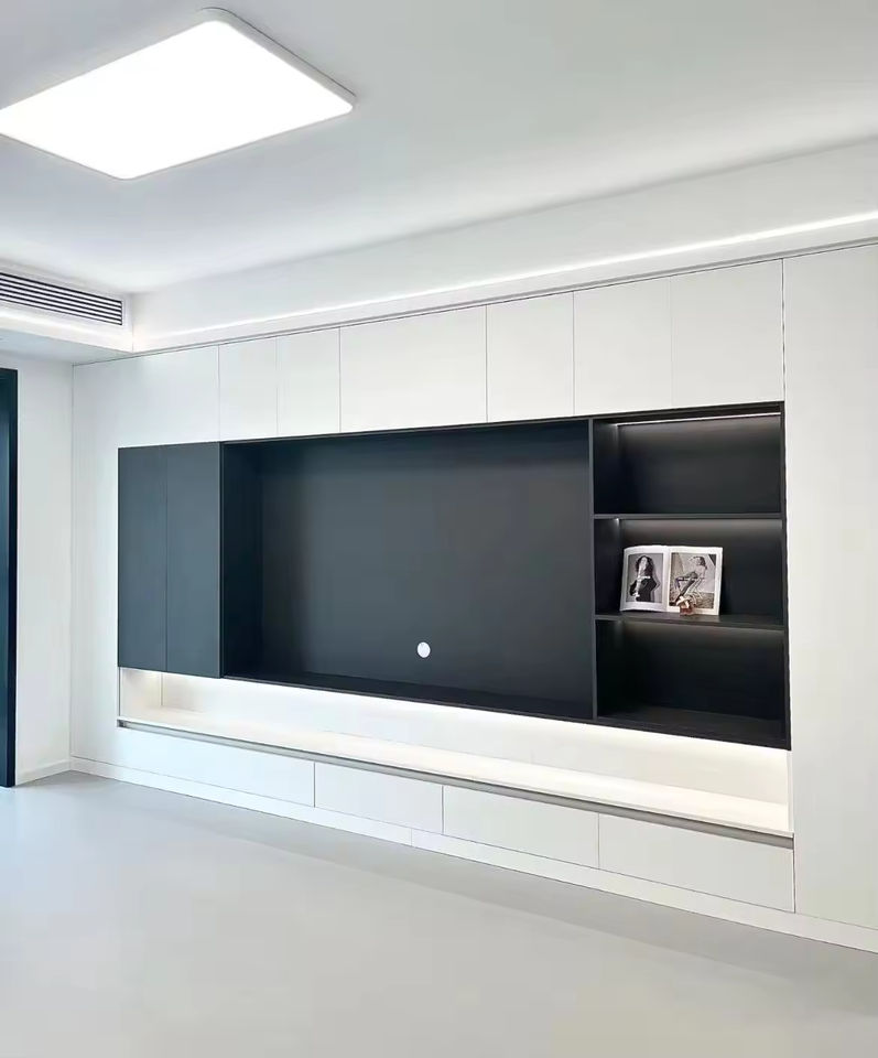 Meuble TV à panneaux en bois de luxe Offre Spéciale moderne conception personnalisée support de rangement à 3 compartiments pour salon chambre à coucher salle à manger appartement