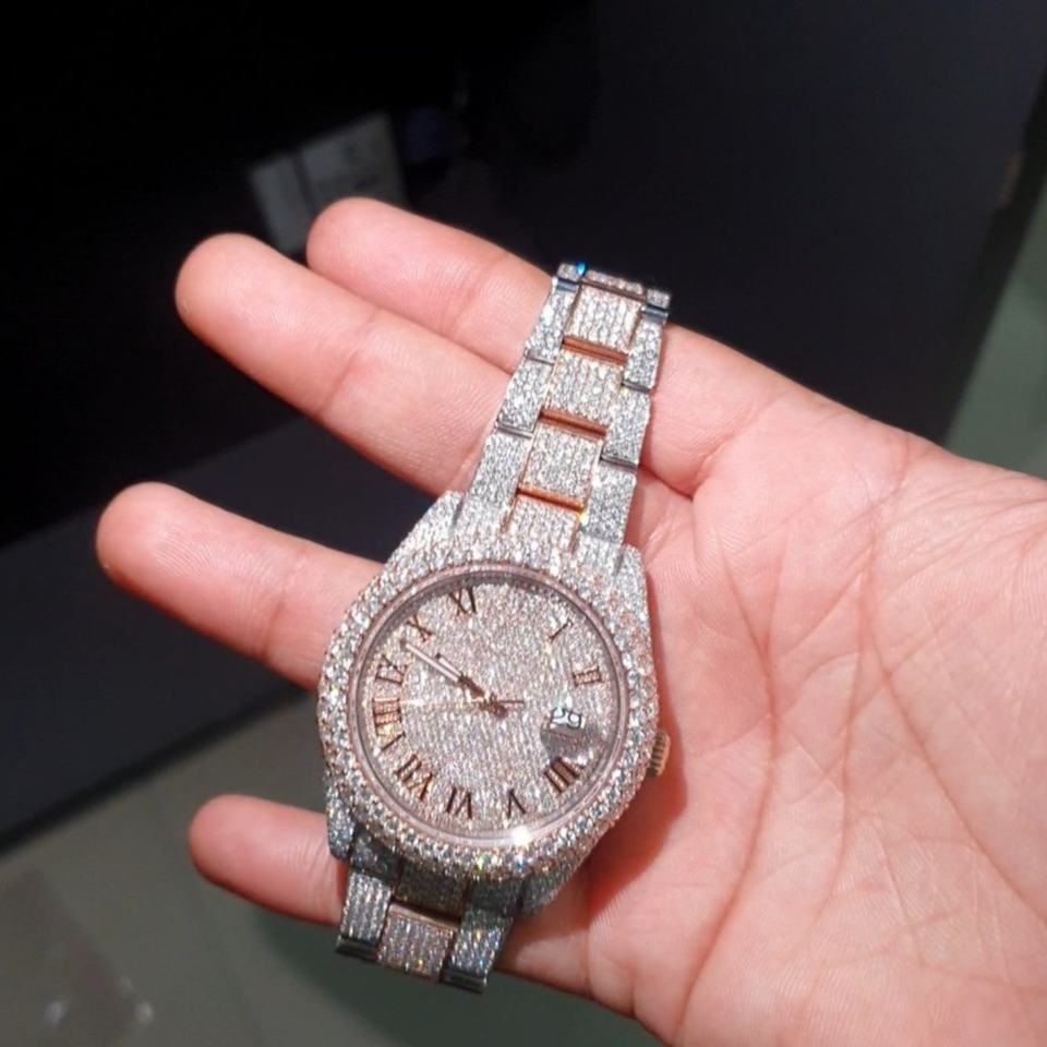 Nom du produit:Montre entièrement glacée pour hommes avec chiffres romains