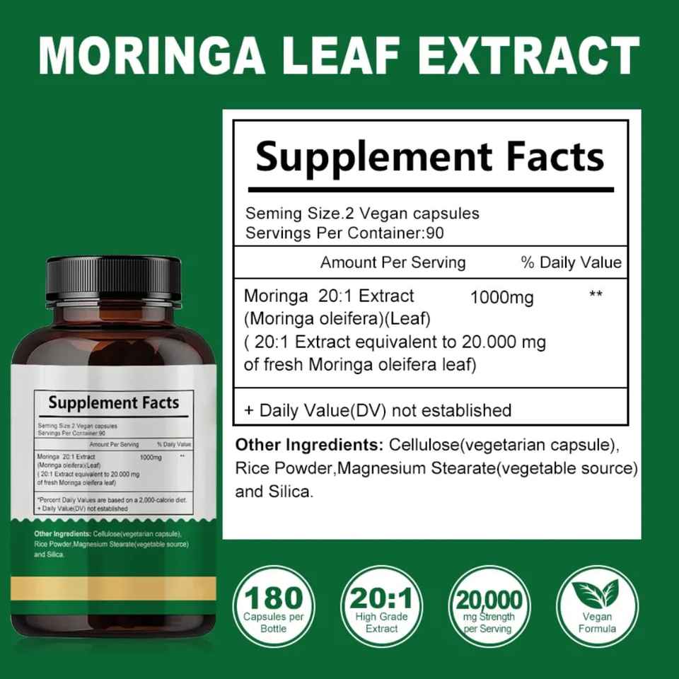 Hot Sale Moringa Leaf Extract Capsules 500mg Natural Herbal Supplement for Energy & Immunity Moringa 60 Capsules for Men & Women